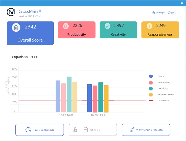 最后给大家测试一下综合性能方面的表现,这里我们直接用CrossMark进行测试,它是一款综合测试软件,能够很好地反映平台的生产率、创造性以及反应能力,同时还支持 Windows、MacOS 等多个平台运行。这次我们使用的是BPN专业版本,测试出来的数据比免费版本的更准确。