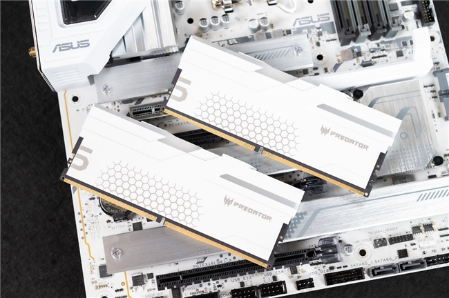 颜值方面,宏碁掠夺者Hermes冰刃 DDR5内存共有黑色、白色和银色三色可供选择。其外观采用铝合金马甲,四周则通过斜切线条堆叠和压铸工艺突出了“刃”的主题造型,同时还安排了大面积蜂窝状的渐变图案,电竞感十足。