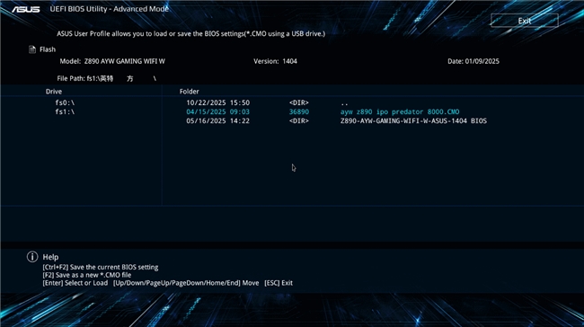 进入页面后找到你下载的匹配文件并加载,退出页面后按F10保存,IPO即完成开启。