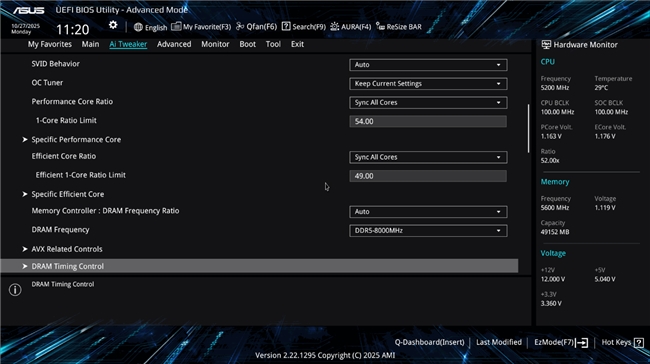 在测试开始前,我们照例介绍一下本次的测试平台,主板我们采用的是华硕Z890 AYW GAMING WIFI W主板,作为华硕中端旗舰级主板的代表,Z890 AYW GAMING WIFI W主板不仅拥有强大的扩展性、优化的散热设计,在超频方面也有一定的潜力。
