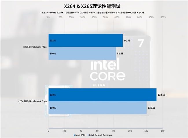 视频编解码环节也可以看出IPO对整机性能提升之大,在X264与X265两项Benchmark里,都是10%以上的性能提升。