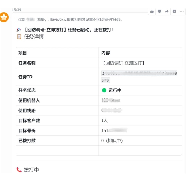 “龙虾,立刻用avavox开始拨打刚才设置的‘回访调研’任务。”